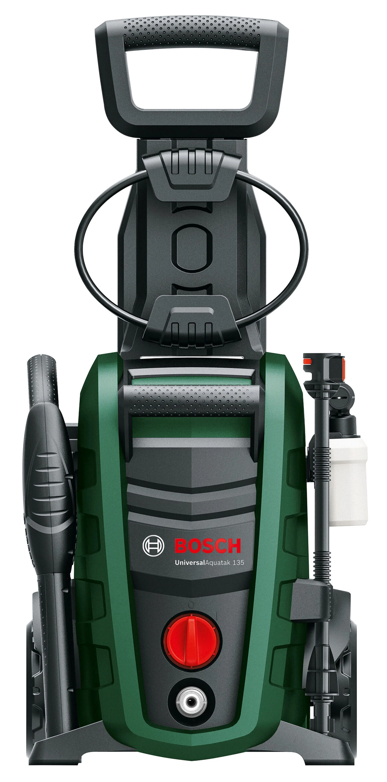 The UniversalAquatak 135 is a compact tool helping you to manage all your cleaning needs quickly and effortlessly. The high-pressure washer comes with an innovative 3-in-1 nozzle with pencil jet thus ensuring 10 percent improvement in cleaning performance compared to its predecessors. With its powerful 135 bar, three cylinder pump the Aquatak 135 provides you with all the power you need to tackle a wide range of cleaning tasks. Thanks to its sturdy wheels and an extending fold-down handle, moving the high-pressure washer becomes effortless.