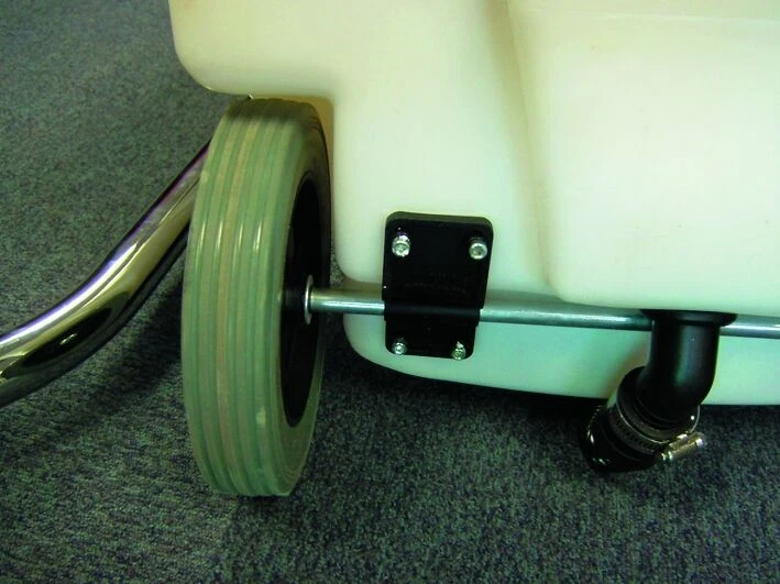 An industrial twin motor Wet & Dry Vacuum Cleaner with motor protection. High impact blown mould tank, and a rear dump pipe for dispensing of sucked up water.