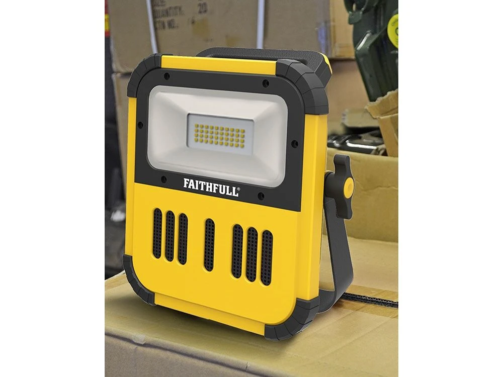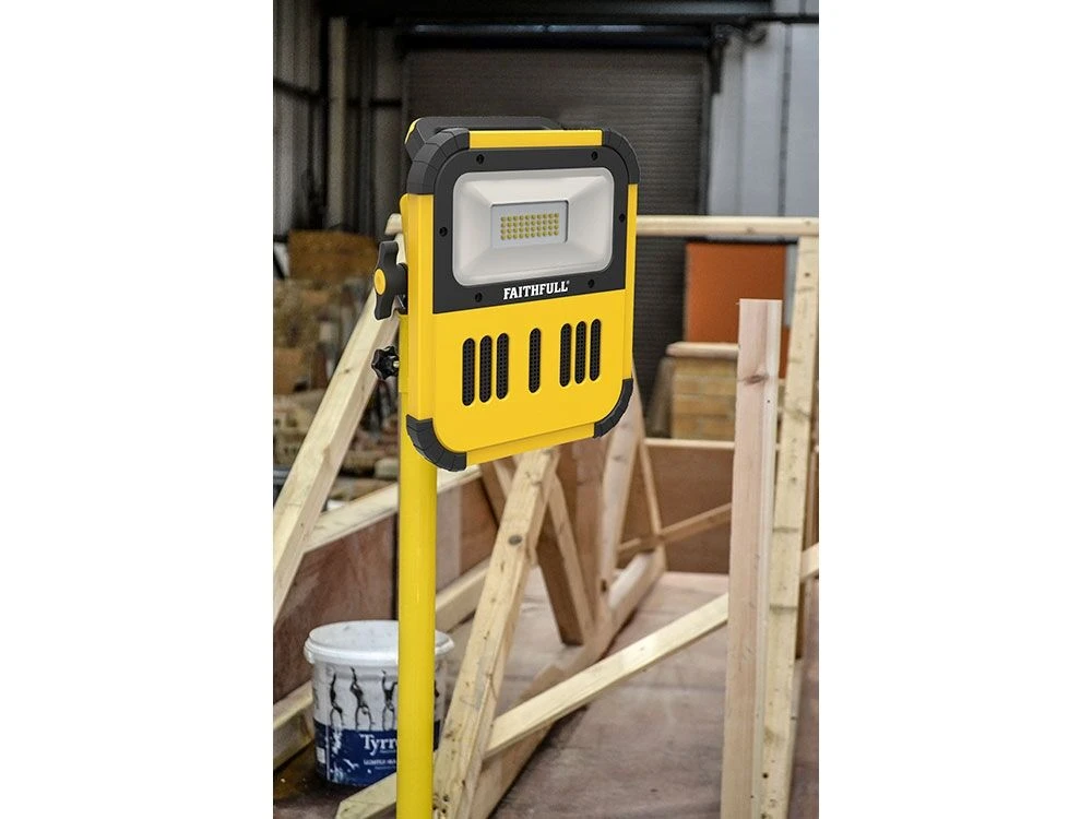 Faithfull 20w LED Cordless Rechargeable Work Light With Bluetooth Speaker & Tripod