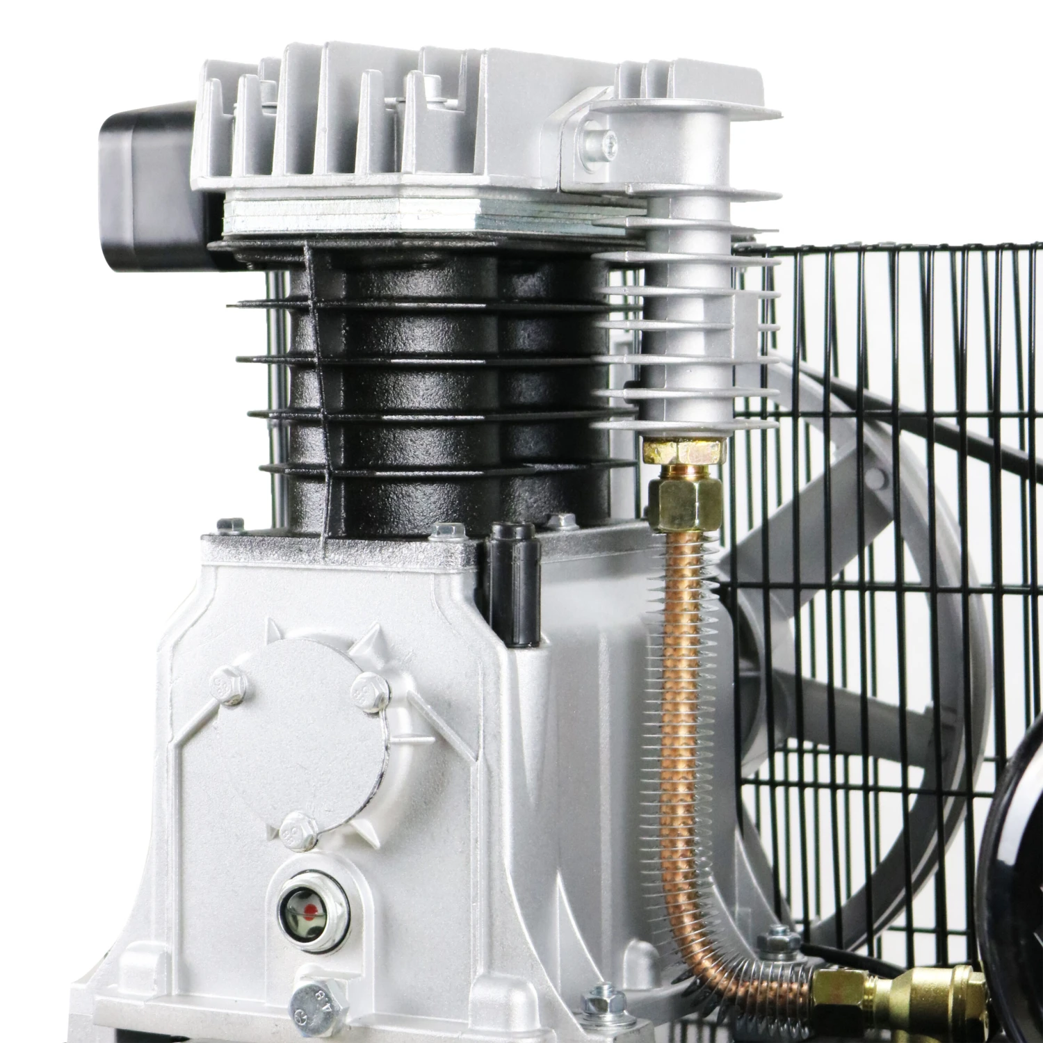 The automatic pressure cut out switch provides user safety with built in safety valve and pressure regulator with twin gauges gives the user controlled variable air pressure. The gauges measure the pressure in the air tank and the air outlet pressure.