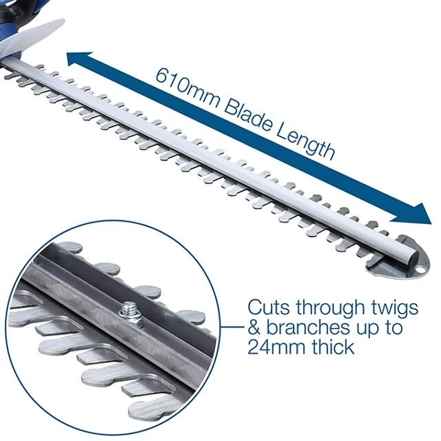 As this Hyundai hedge clipper is electric, it means you won’t have to fiddle around with petrol and oil or have to worry about making sure any batteries are charged – simply plug it in and you’re ready to get started! This also means you won’t have to think about any of the routine maintenance that accompanies petrol models, such as dealing with stale fuel, etc, making this a great low maintenance option.
