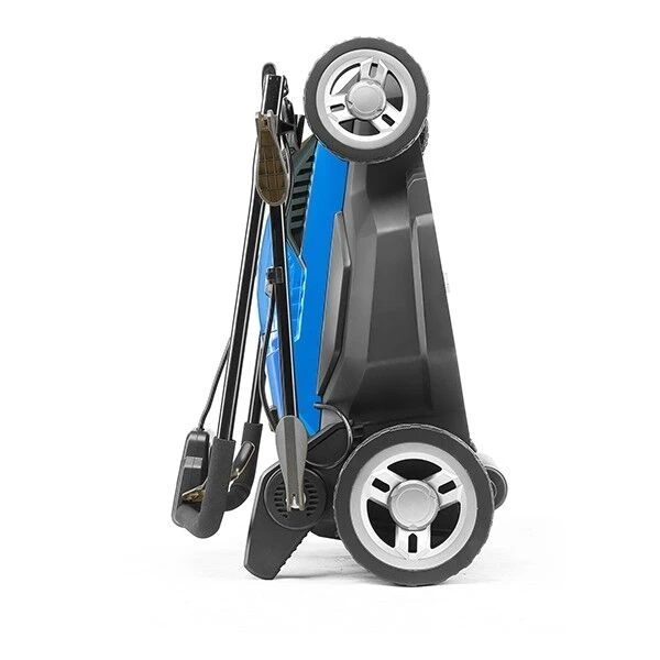 The handles are adjustable for height and also fold down over the main power unit, which makes this compact lawn mower easy to carry and transport in the boot of your car. The HYM3800E can also be stored upright saving floor space when stored in a garden shed and garage.