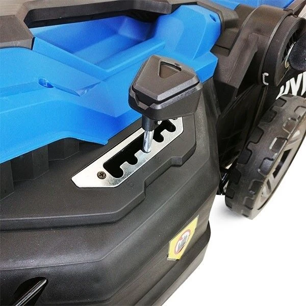 With 5 cutting heights, ranging from 20mm for a smooth lawn to 70mm for cutting longer grass, the HYM3800E puts you in control over the finish of your cut. The height is adjusted by a single 5 position lever, allowing you to adjust height with ease.