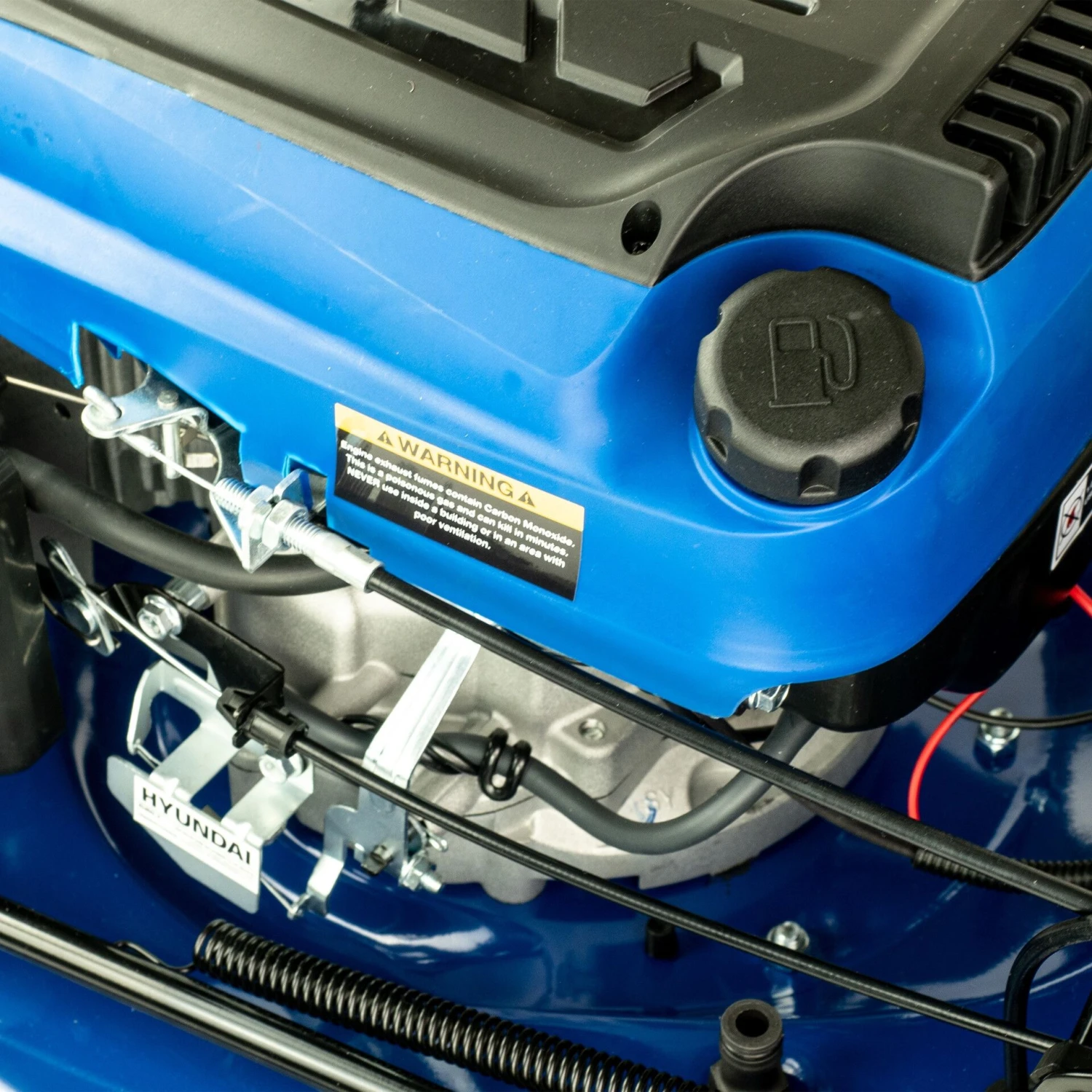 The HYM560SPE is a petrol self-propelled lawn mower from Hyundai with electric push-button start – the largest lawn mower Hyundai currently have available. With a powerful Hyundai Euro 5 196cc engine with low fuel consumption, it is able to handle large lawns 2000 sq. ft. / 185m2 (e.g. 13m x 14m) or larger.