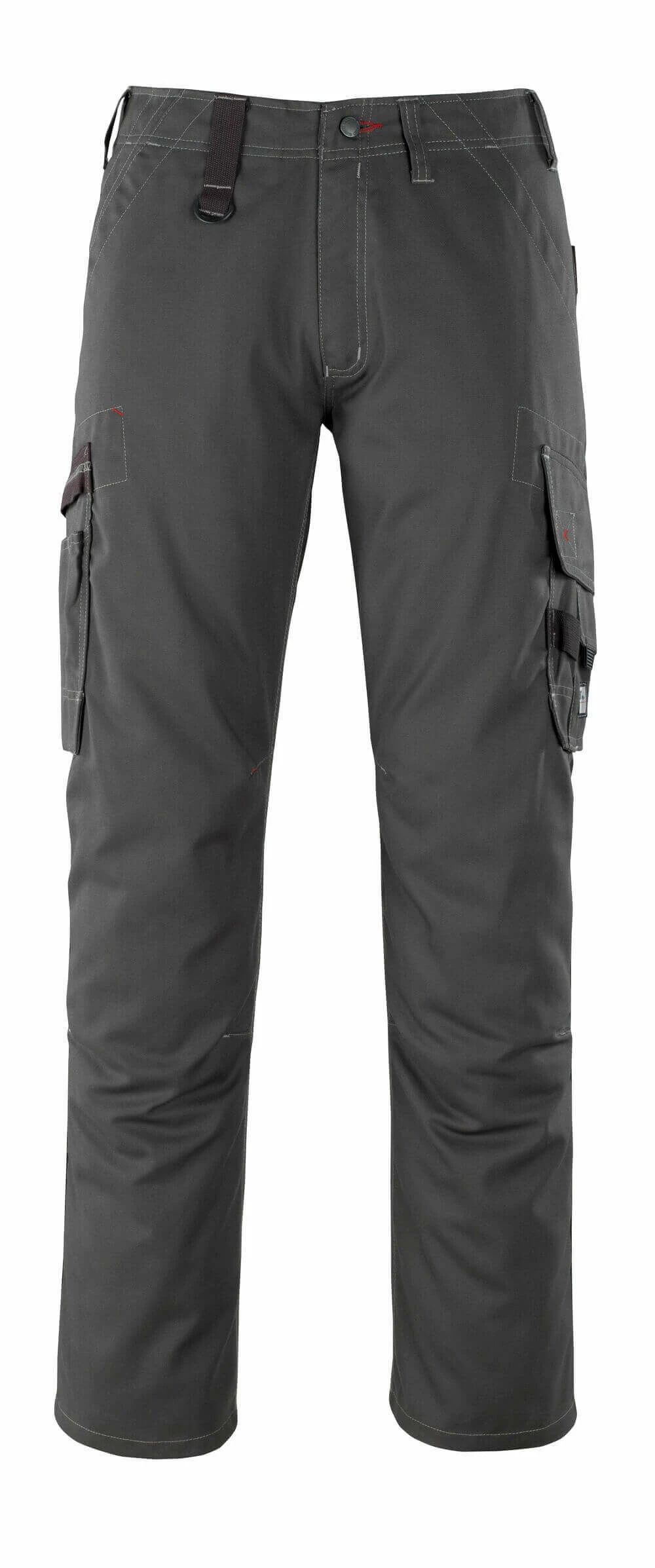 Double and triple stitched seams on leg and crotch. Low waist and form cut waist band. Ergonomically formed trouser leg. Belt loops. Fly with zip. Front pockets. D-ring. Back pockets, one with flap and hook and loop band fastening and one with hidden zip. Thigh pockets, one with flap and hook and loop band fastening and one with hidden zip. Thigh phone pocket with flap and adjustable hook and loop band fastening. Contrast red stitching on parts of the garment. Reflectors.