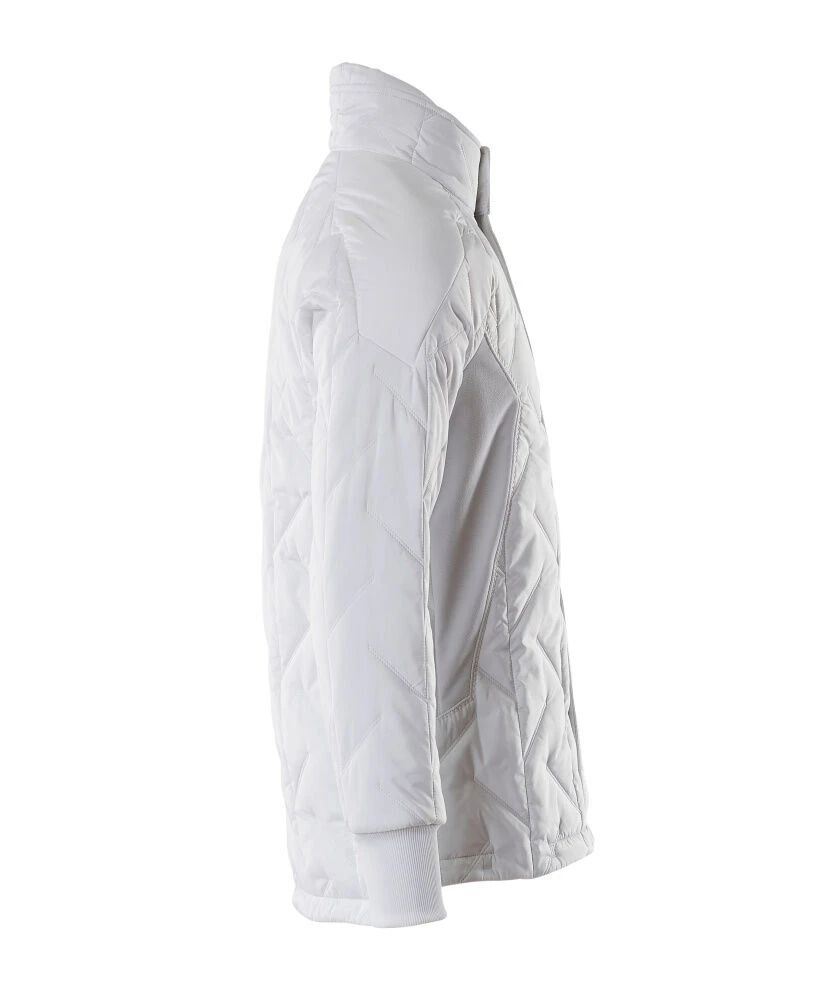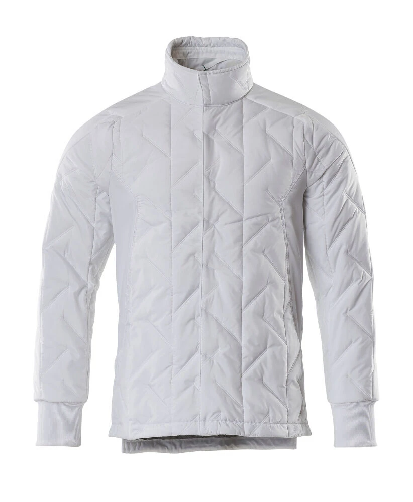 Water-repellent. Stretch fabric on parts of the product. High collar. Slightly curved collar that closes tightly to the neck and keeps the cold out. Rib at cuffs. Slits at the sides. Fastening with hidden press studs. Metal press studs. Prepared for insertion of personalized label, HF and UHF chip. Colour labelling for all sizes. Suitable for Industrial Laundering.