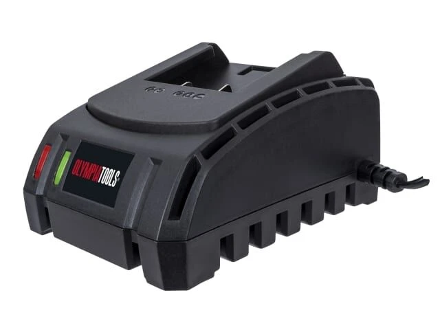 The Olympia Tools Fast Charger has a compact design and 2 LED indicators. Charges a 2.0Ah Li-ion battery in one hour and a 4.0Ah Li-ion battery in 2 hours.